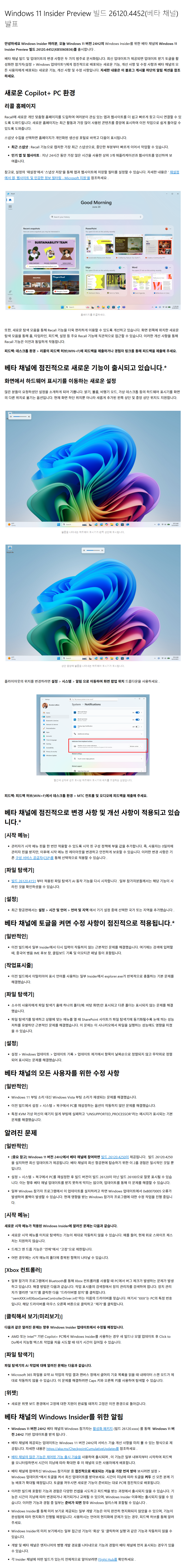 오늘 Windows 11, Beta 채널 참가자 업데이트 26120.4452 배포되었습니다.