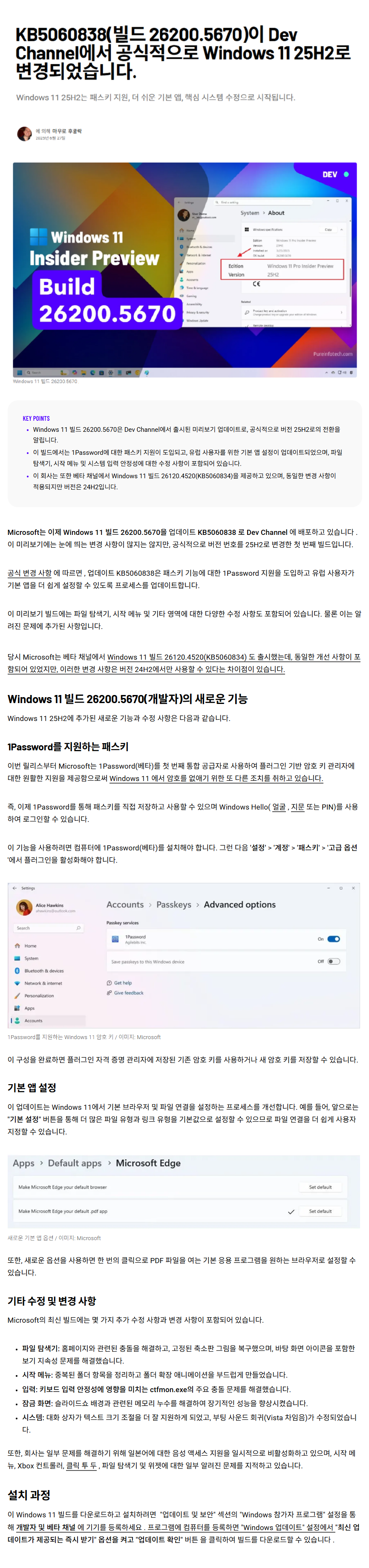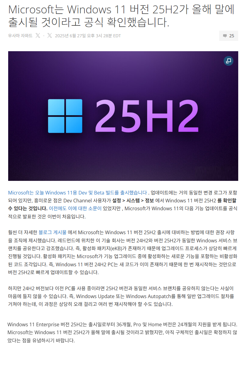 Windows 11 버전 25H2가 올해 가을(9~10월)에 출시될 예정입니다...ㅎ