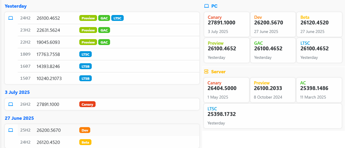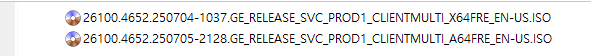 ○ 일반 사용자 채널 = Windows Server 2025 : 빌드 26100.4652 (= 일반 사용자 빌드)