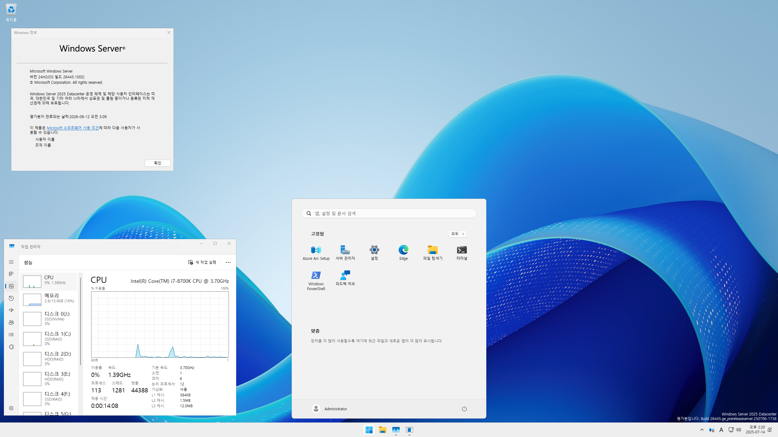 당분간 서버 프리뷰 빌드를 사용하다가 26H2 Canary 채널 빌드로 돌아가야겠네요...ㅎ
