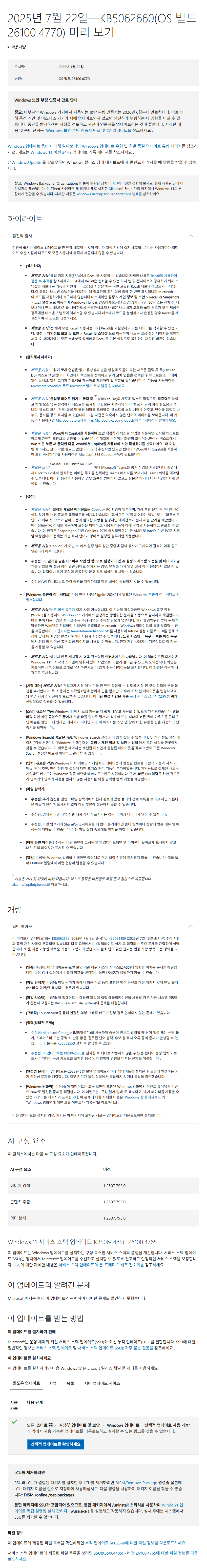 KB5062660 = 최신 누적 업데이트(26100.4484) (Last Cumulative update : LCU) (2025-07-22)