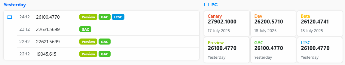 ○ 일반 사용자 채널 = Windows 11 24H2 : 빌드 26100.4770 (= 일반 사용자 빌드)