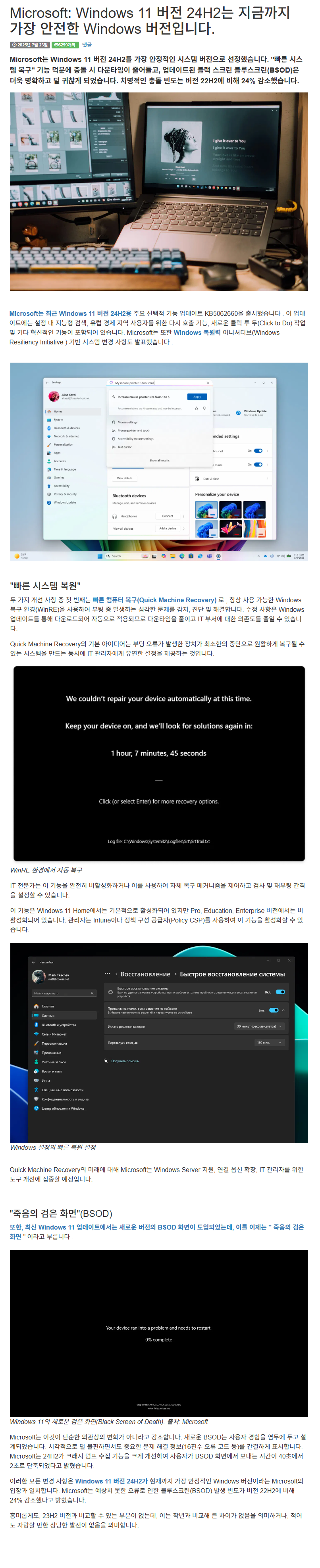 | Microsoft는 Windows 11 버전 25H2가 올해 가을에 출시될 것이라고 공식 확인했습니다 (2) | 2025.06.29 |