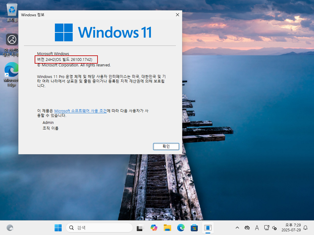 26100.1742 정식 버전에서는 안올라가든 빌드 번호가 이번에는 올라갔습니다..ㅎ