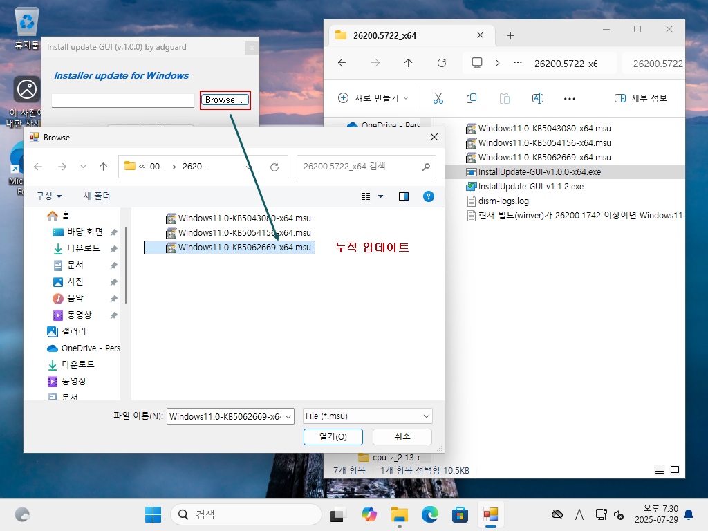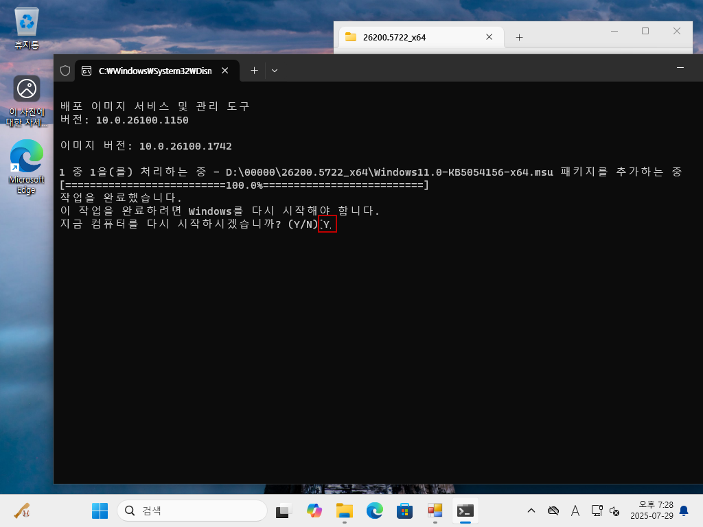 3. 이번에는 누적업데이트(26200.5722)를 설치해줍니다....