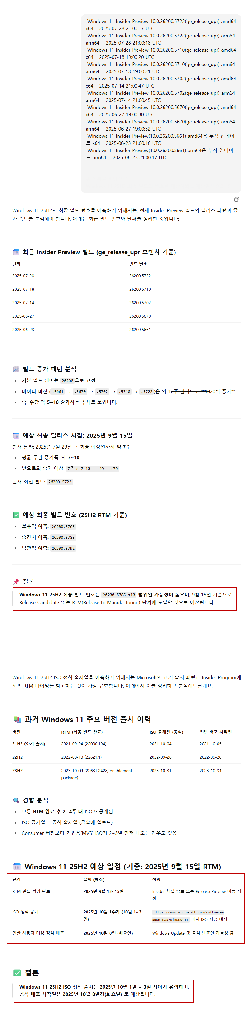"Windows 11 25H2 최종 빌드 번호는 26200.5785 ± 10 범위일 가능성이 높으며,