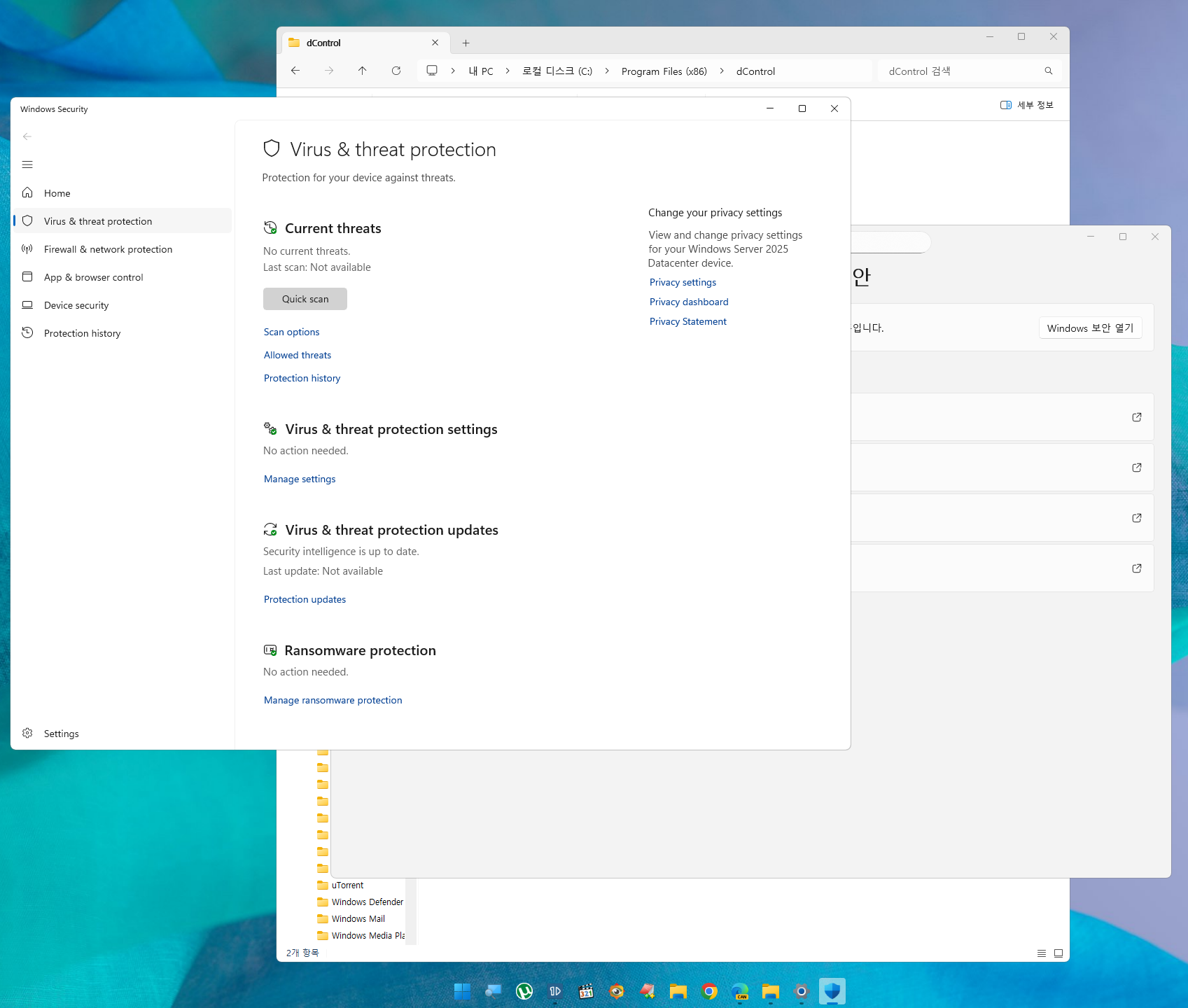 📌⇒ 보안센터 창은 아직도 이렇게 영어로 나옵니다...ㅠ