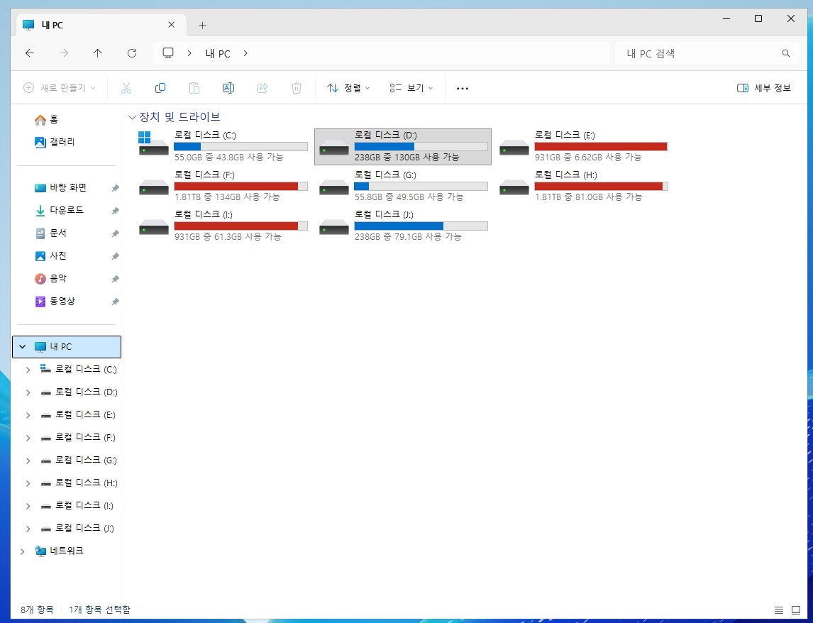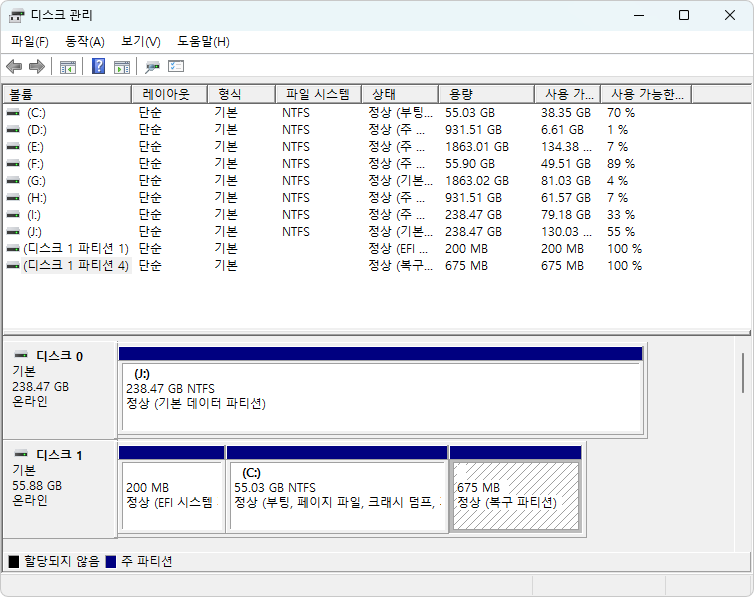 NVME 드라이브가 제일 위로 올라와서 디스크 0번을 차지하고 있습니다..ㅎ