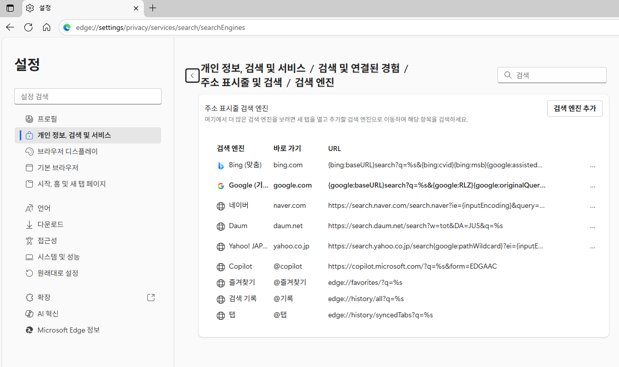 📌⇒ 엣지 검색엔진에서 사라졌던, 구글 검색도 다시 돌아왔네요 ㅎㅎ