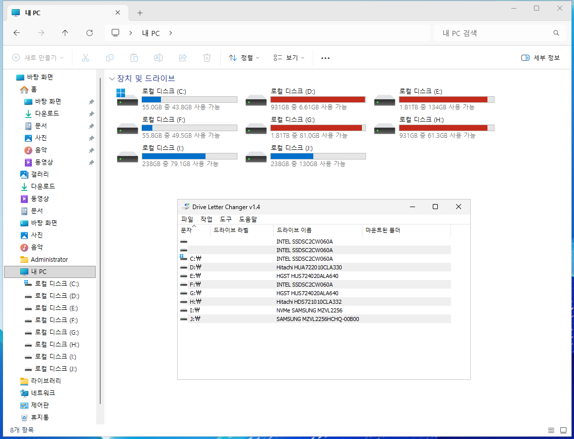 📌⇒ 이번 빌드도 설치후 하드디스크 문자가 뒤죽박죽으로 꼬여있습니다..ㅠ
