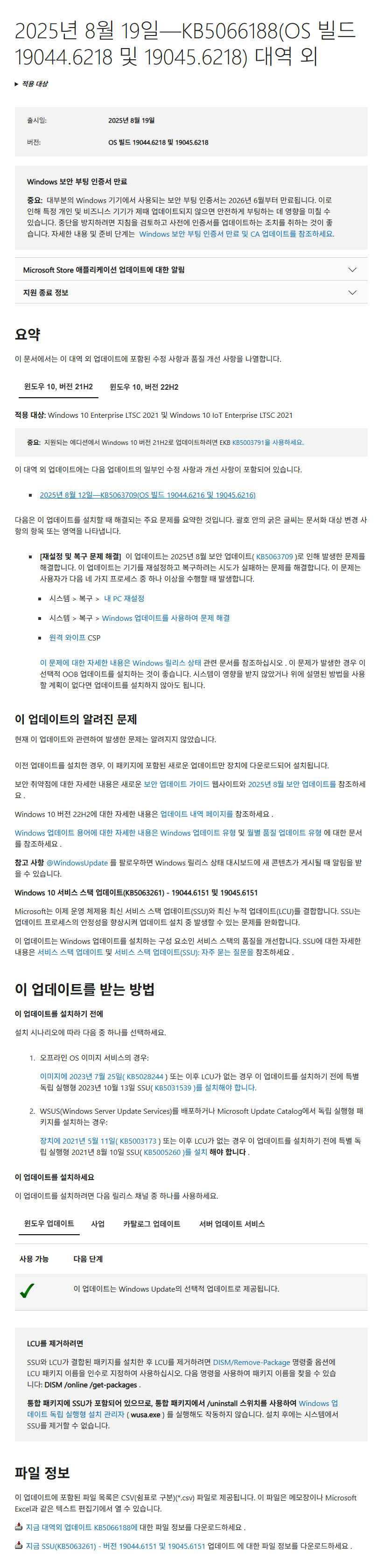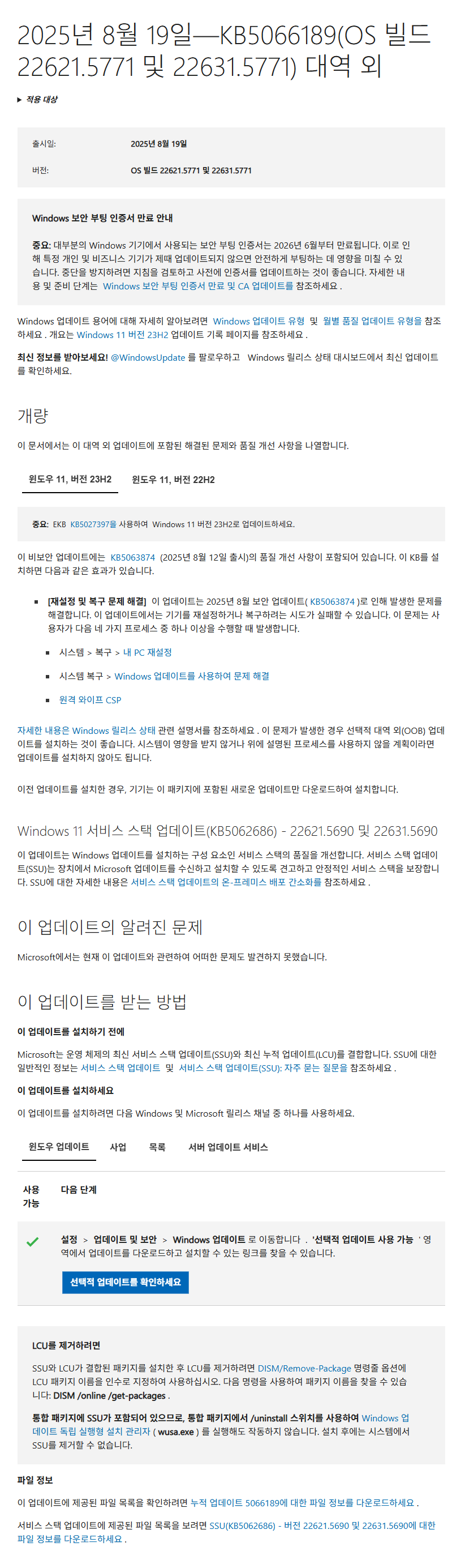 오늘 대역외 업데이트가 배포되었습니다..