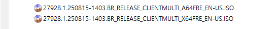 아래 파일은 UUP dump에서 배포하는 스크립트를 이용해서 MS에서 배포하는 파일(ESD, cab파일)로 만든 순수 ISO 파일입니다.