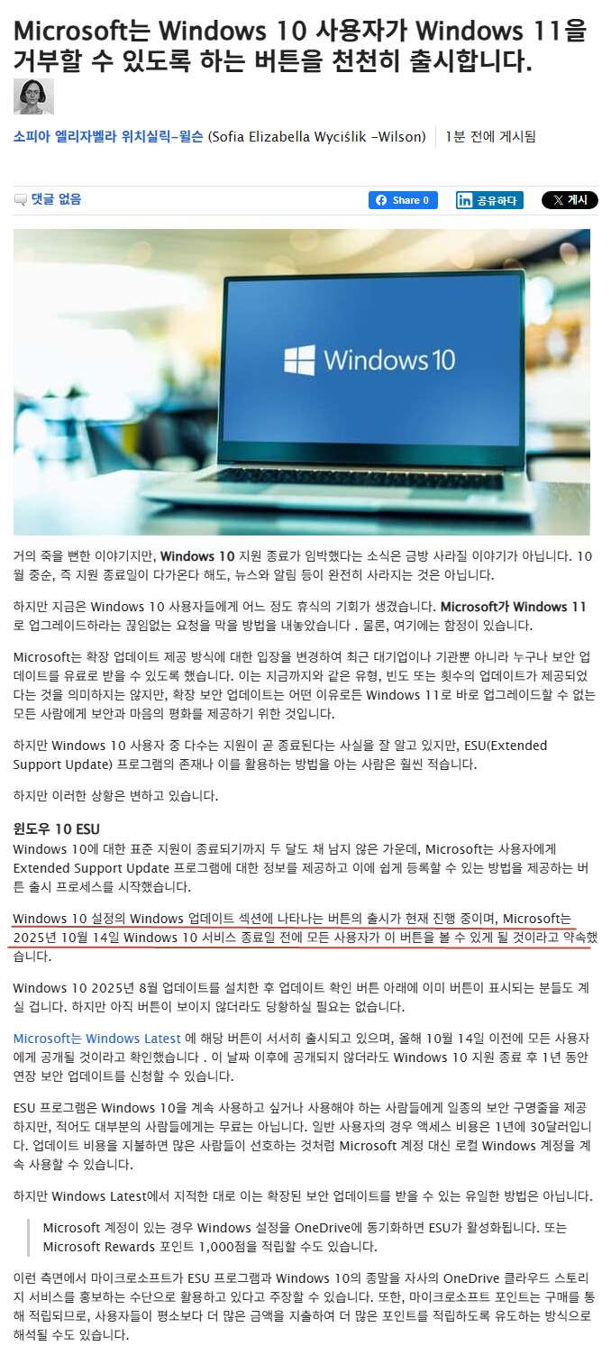 | Windows 10은 2025년 10월 14일에 지원 종료됩니다. (0) | 2025.09.14 |