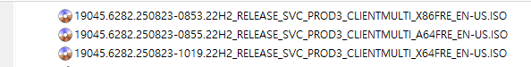 ○ 일반 사용자 채널 = Windows 10 22H2 : 빌드 19044.6282 / 19045.6282 (= 일반 사용자 빌드)