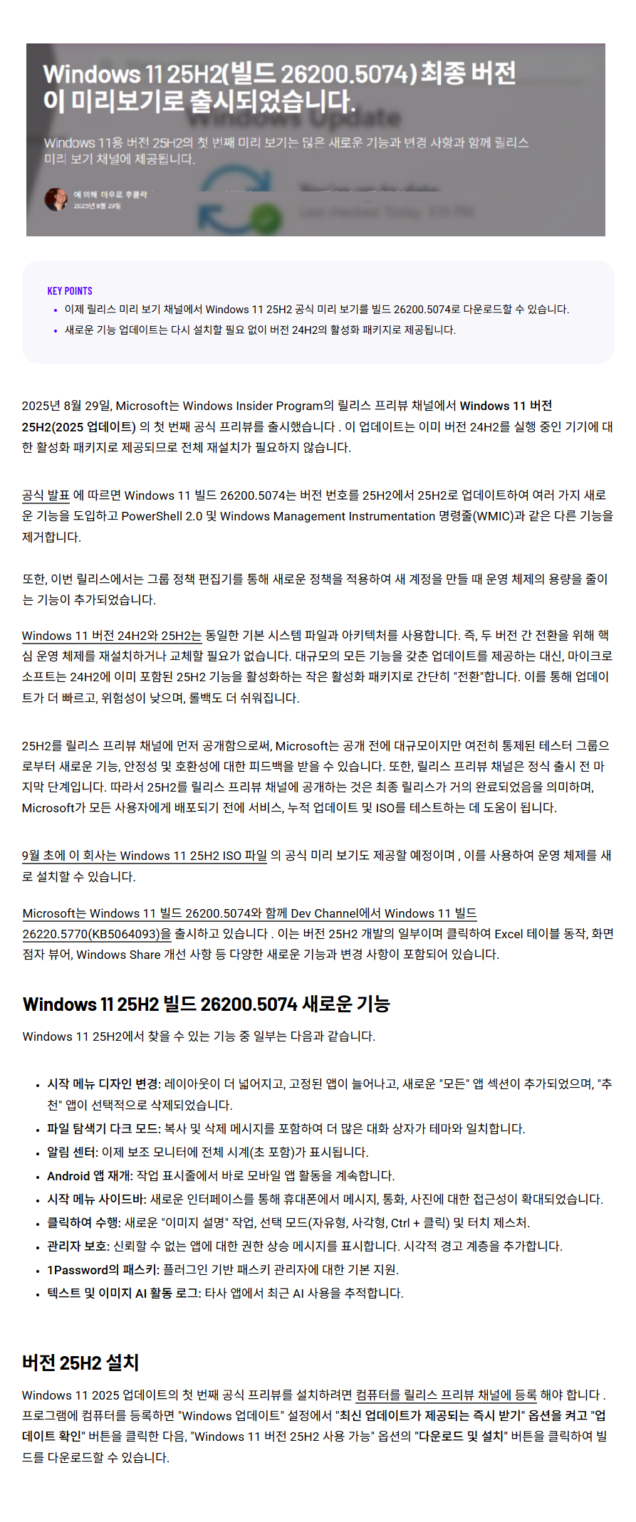 | Windows 11 25H2 새로운 기능, 릴리스 세부 정보, 업그레이드 옵션 (지금까지) (0) | 2025.08.03 |