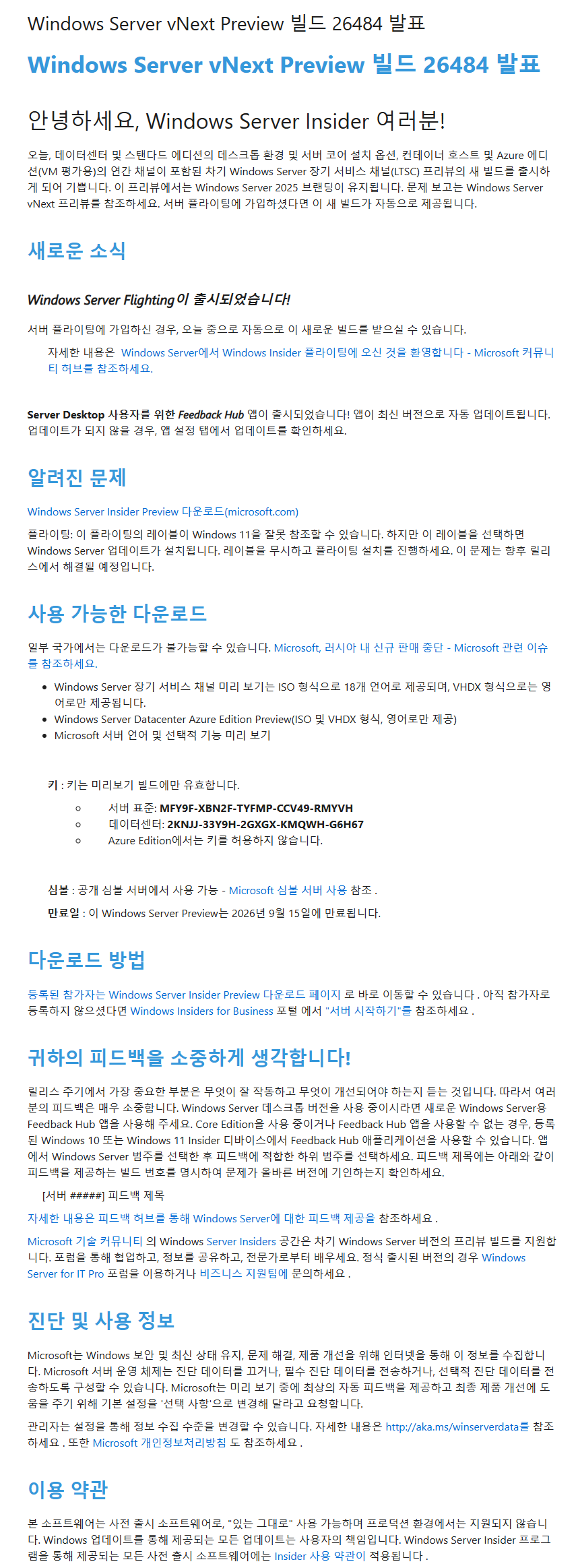 | Windows Server vNext Insider Preview 빌드 26470.1000 통합판 [배포 종료] (0) | 2025.08.27 |