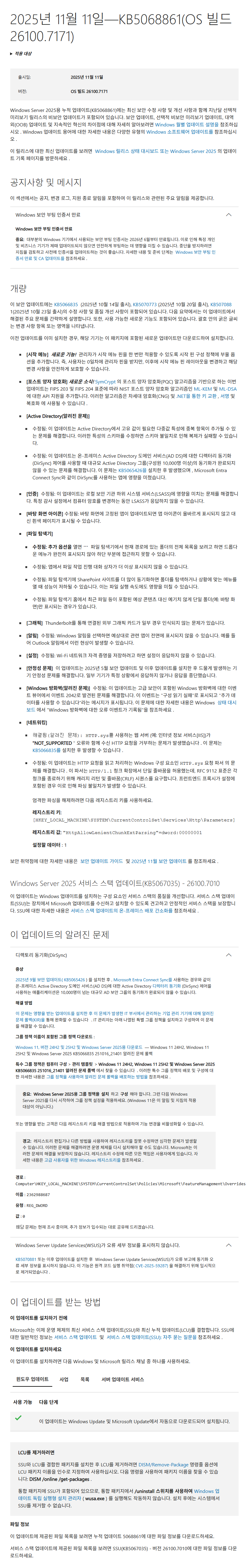 KB5068861 = 최신 누적 업데이트(26100.7171) (Last Cumulative update : LCU) (2025-11-11)