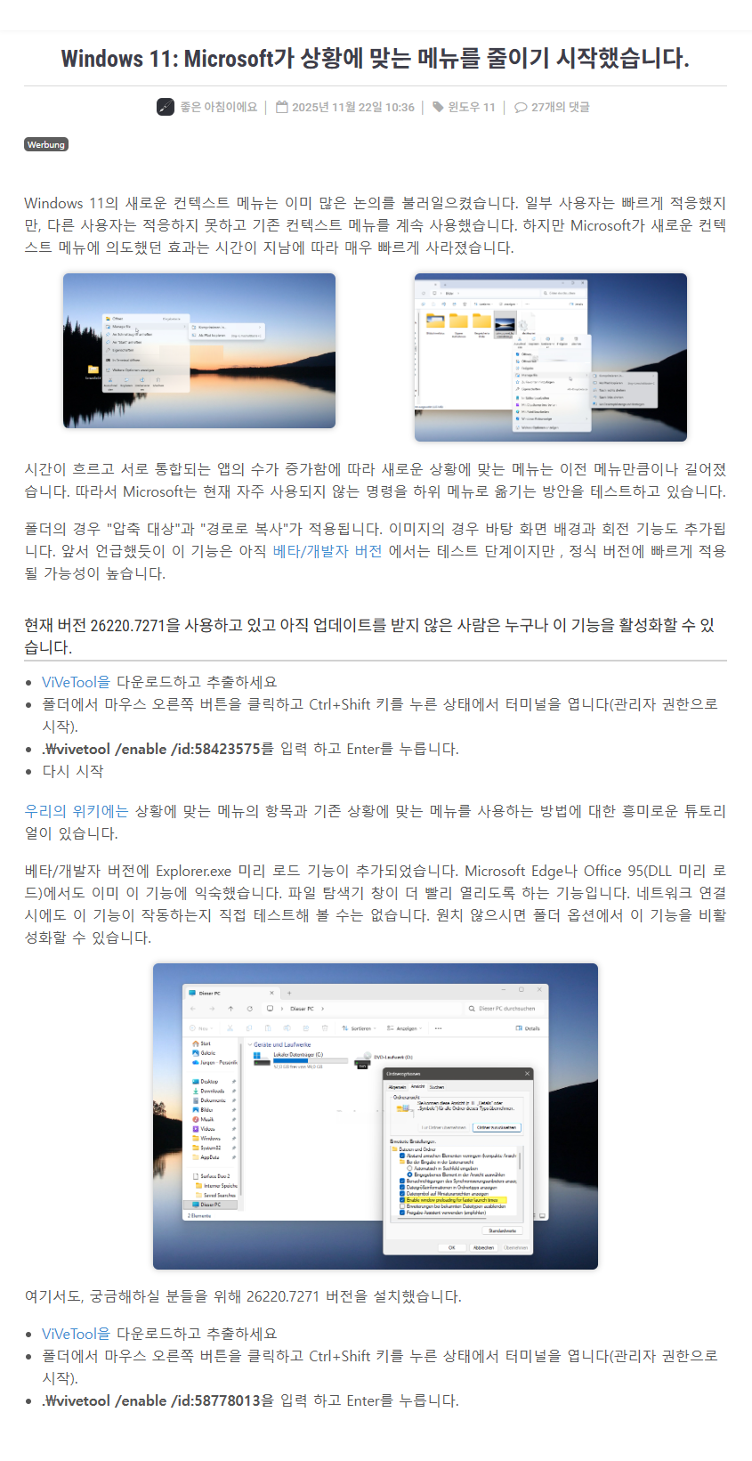 | Windows 11 : 파일 탐색기가 사전 로딩을 통해 더 빠르게 시작됩니다. (2) | 2025.11.22 |