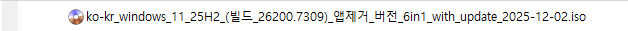 ※ Windows 11, 25H2, 빌드 26200.7309 최적화 버전 ※