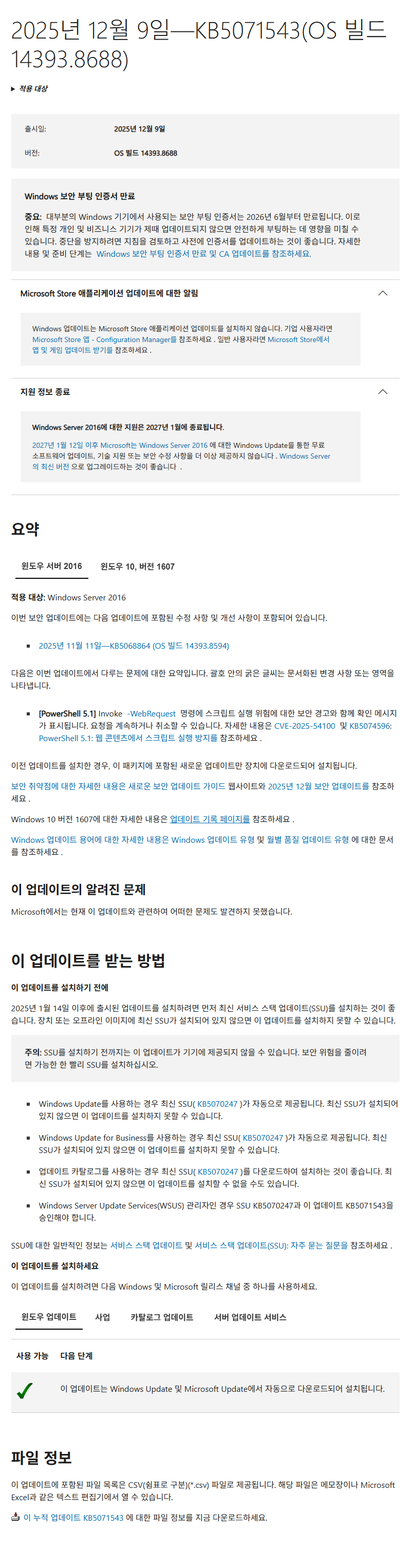 Windows Server 2016 지원은 2027년 1월에 종료됩니다.