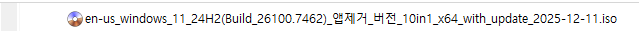 KB5072033 = 최신 누적 업데이트(26100.7462) (Last Cumulative update : LCU) (2025-12-09)