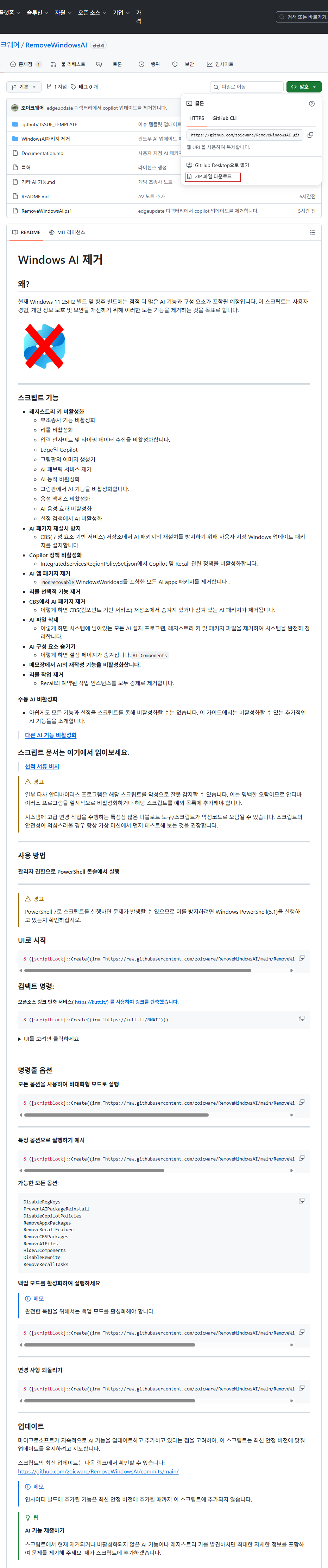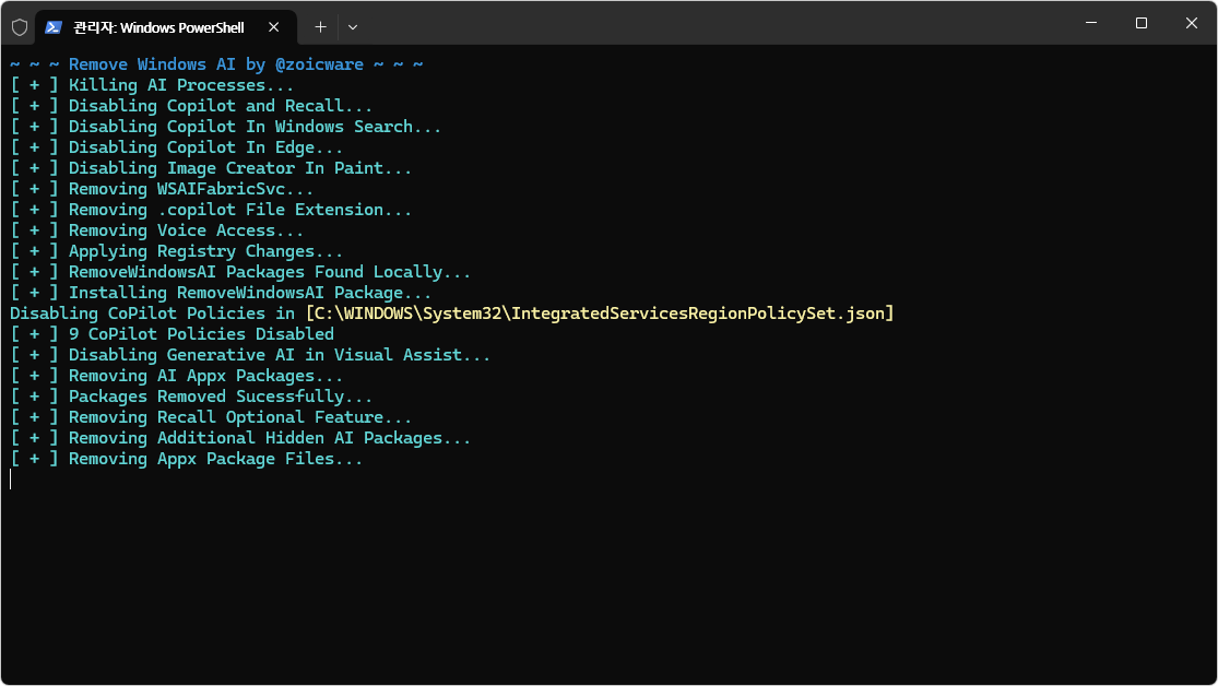 Windows 11에서 AI 기능을 완전히 제거하는 스크립트입니다.