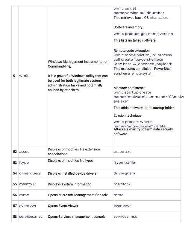 | 50 | wmic | Windows 관리 도구 명령어를 실행합니다. | wmic process list brief |