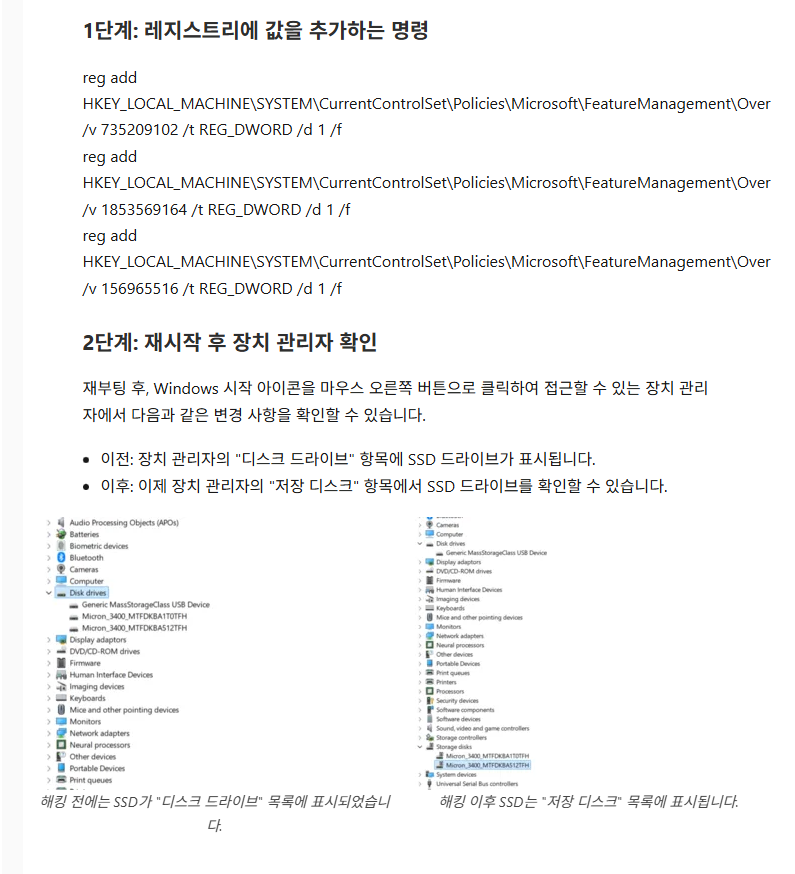 안전모드에서도 Native NVMe 사용할 수 있게 만들어주 주는 레지스트리 라고 합니다.
