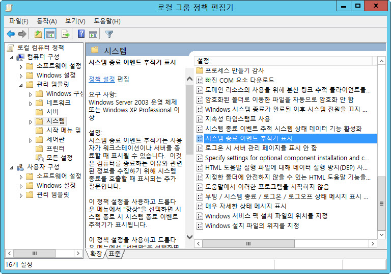 서버 종료 및 재시작시 왜 그렇게 하는지 묻는 [종료 이벤트 추적기]를 끄는 방법입니다.ㅎ