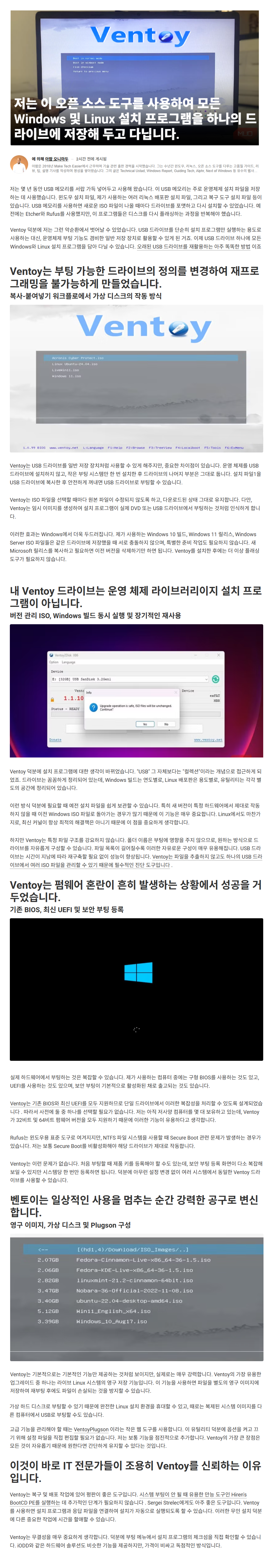저는 Ventoy를 사용하지 않지만, 윈도우 설치작업을 많이 하시는 분들은 꼭 사용하는 툴입니다..