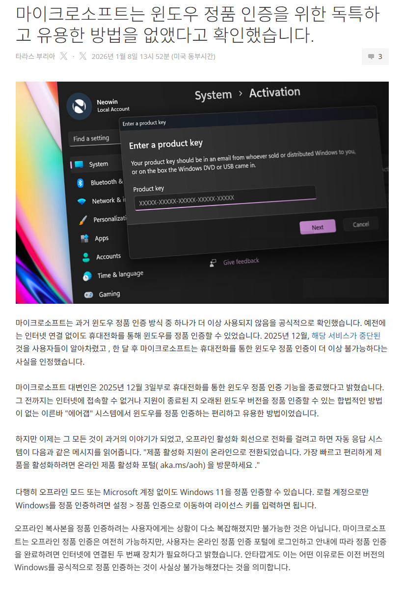 | MS의 2026년 지원 종료 대상에는 Windows 11 24H2, Office 2021 등이 포함됩니다. (0) | 2026.01.07 |