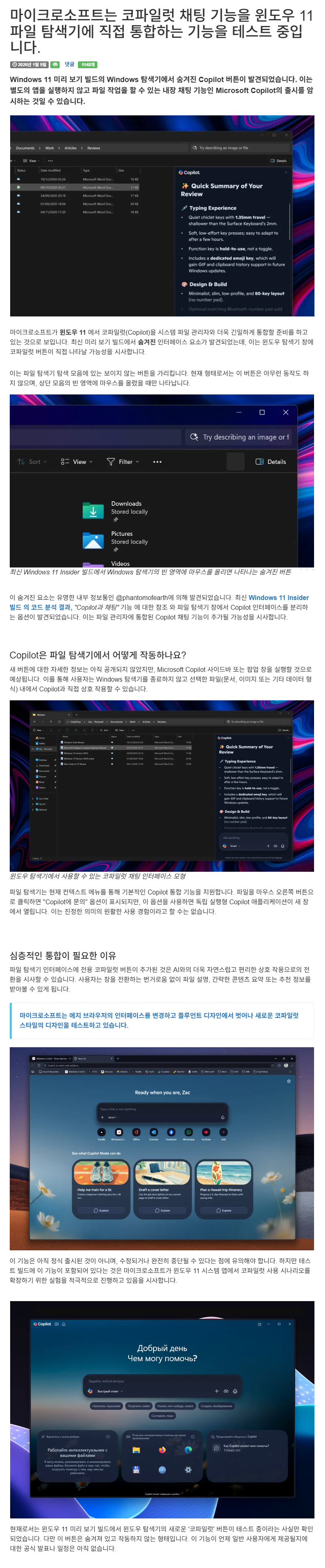 결국 파일 탐색기에 까지... Copilot를 집어넣는군요...ㅠ