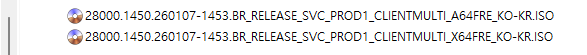 KB5074107 = 최신 누적 업데이트(28000.1450) (Last Cumulative update : LCU) (2026-01-13)