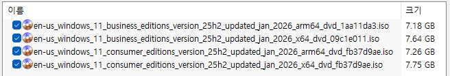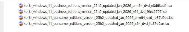 Windows 11, 25H2 버전, 1월 업데이트 통합판 MSDN 순수 버전이 배포되었습니다.