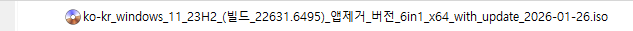 KB5078132 = 최신 누적 업데이트(22631.6495) (Last Cumulative update : LCU) (2026-01-24)