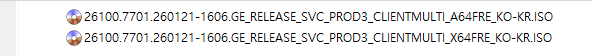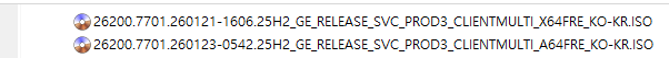 KB5074105 = 최신 누적 업데이트(26200.7701/ 26100.7701 ) (Last Cumulative update : LCU) (2026-01-27)