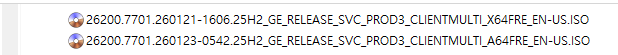 2026-01 Windows 11 Version 25H2, 빌드 26200에 대한 누적 업데이트(KB5074105) : 26200.x → 26200.7701