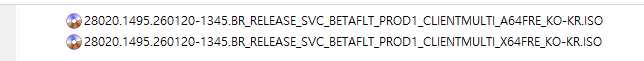 아래 파일은 UUP dump에서 배포하는 스크립트를 이용해서 MS에서 배포하는 파일(ESD, cab파일)로 만든 순수 ISO 파일입니다.