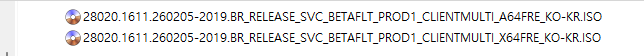 아래 파일은 UUP dump에서 배포하는 스크립트를 이용해서 MS에서 배포하는 파일(ESD, cab파일)로 만든 순수 ISO 파일입니다.