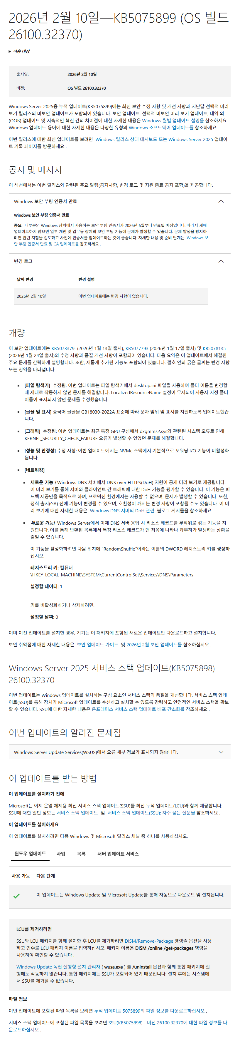KB5075899 = 최신 누적 업데이트(26100.32370) (Last Cumulative update : LCU) (2026-02-10)