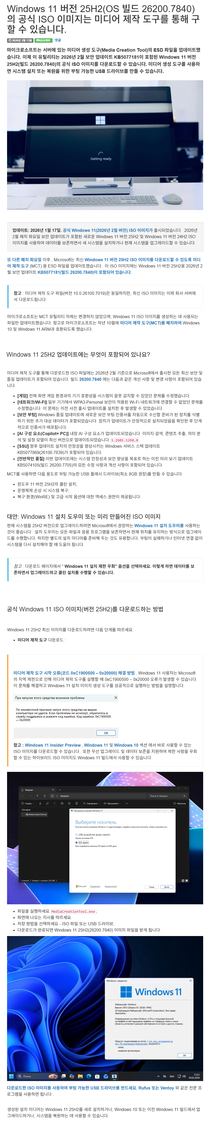 | Windows 11 버전 25H2(OS 빌드 26200.7840)의 공식 ISO 이미지는 미디어 제작 도구(MCT)를 통해 구할 수 있습니다. (0) | 2026.02.19 |