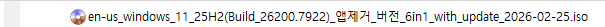 Windows 11, 25H2, 빌드 26200.7922 앱제거 버전 ※