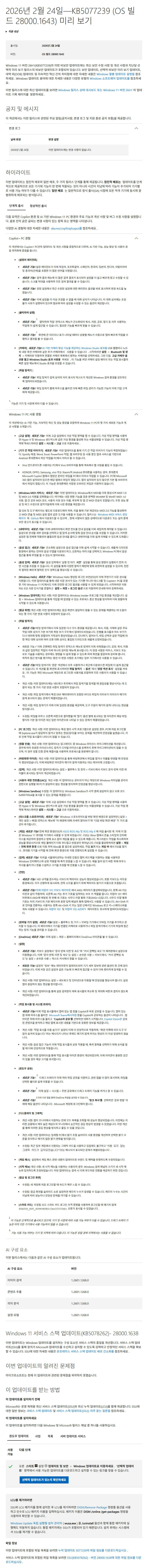 KB5077239 = 최신 누적 업데이트(28000.1643) (Last Cumulative update : LCU) (2026-02-24)