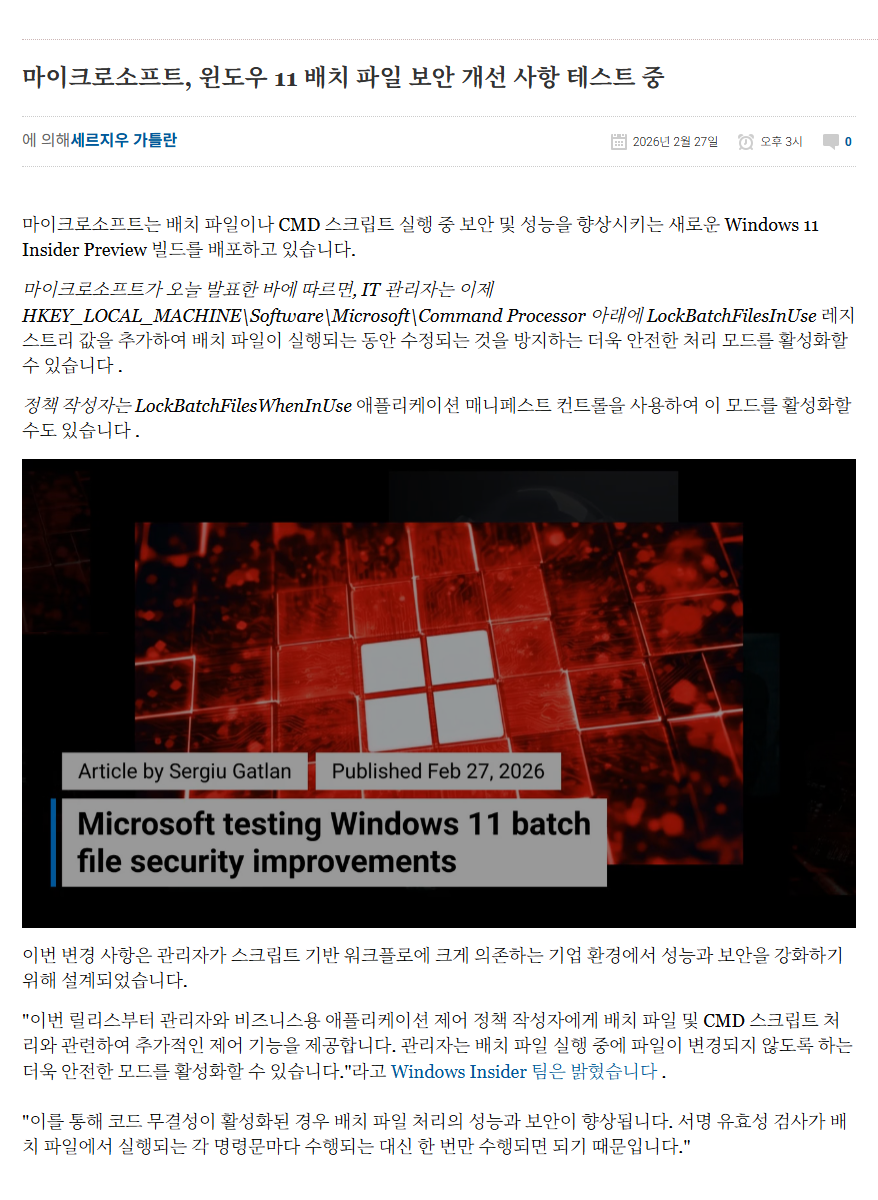 배치파일 실행 중에 수정 및 변조를 맞는 방법이 테스트 중이라고 하네요...