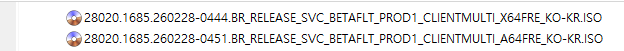 아래 파일은 UUP dump에서 배포하는 스크립트를 이용해서 MS에서 배포하는 파일(ESD, cab파일)로 만든 순수 ISO 파일입니다.