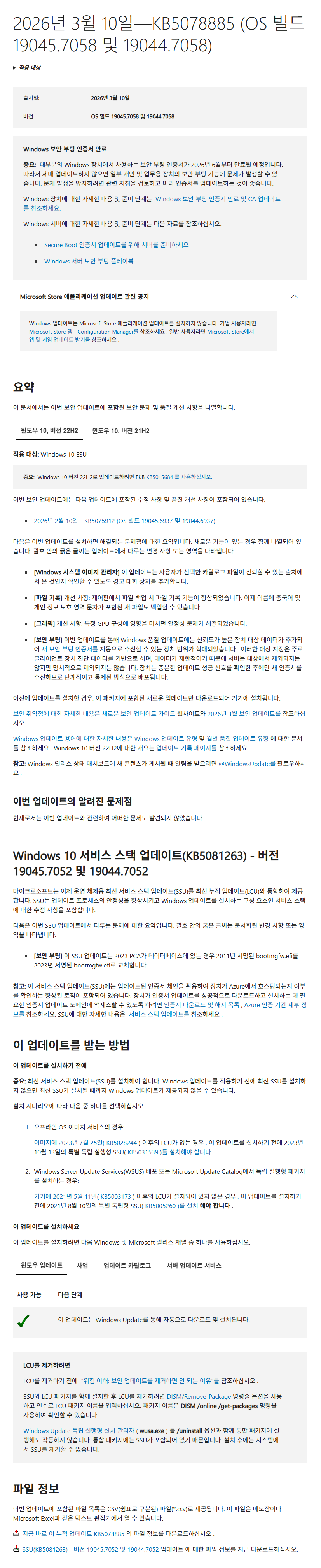 (KB5081263) - versions 19045.7052 / 19044.7052 = 서비스 스택 업데이트 (Servicing Stack Update : SSU) (누적업데이트 설치 준비 파일) (2026-03-10)