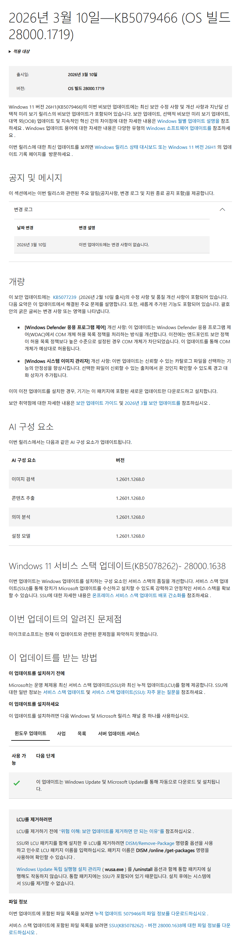 KB5079466 = 최신 누적 업데이트(28000.1719) (Last Cumulative update : LCU) (2026-03-10)