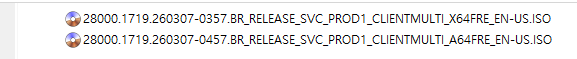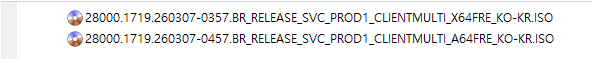 아래 파일은 UUP dump에서 배포하는 스크립트를 이용해서 MS에서 배포하는 파일(ESD, cab파일)로 만든 순수 ISO 파일입니다.
