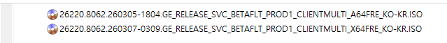 ○ 개발자 채널 [Dev] = Windows 11 26H2 : 빌드 26300.8068 (= 참가자 빌드)