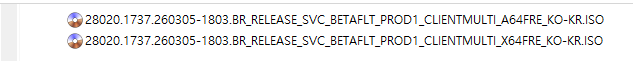 아래 파일은 UUP dump에서 배포하는 스크립트를 이용해서 MS에서 배포하는 파일(ESD, cab파일)로 만든 순수 ISO 파일입니다.